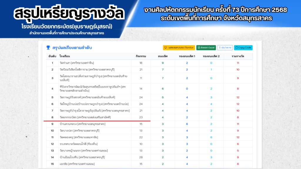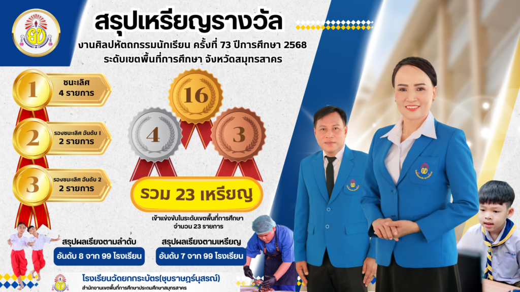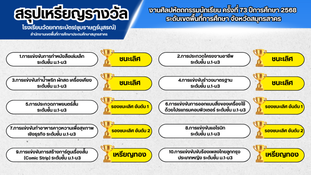 สรุปผลการเเข่งขันศิลปหัตถกรรมนักเรียน ครั้งที่ 73 ปีการศึกษา 2568 ระดับเขตพื้นที่การศึกษา จังหวัดสมุทรสาคร
